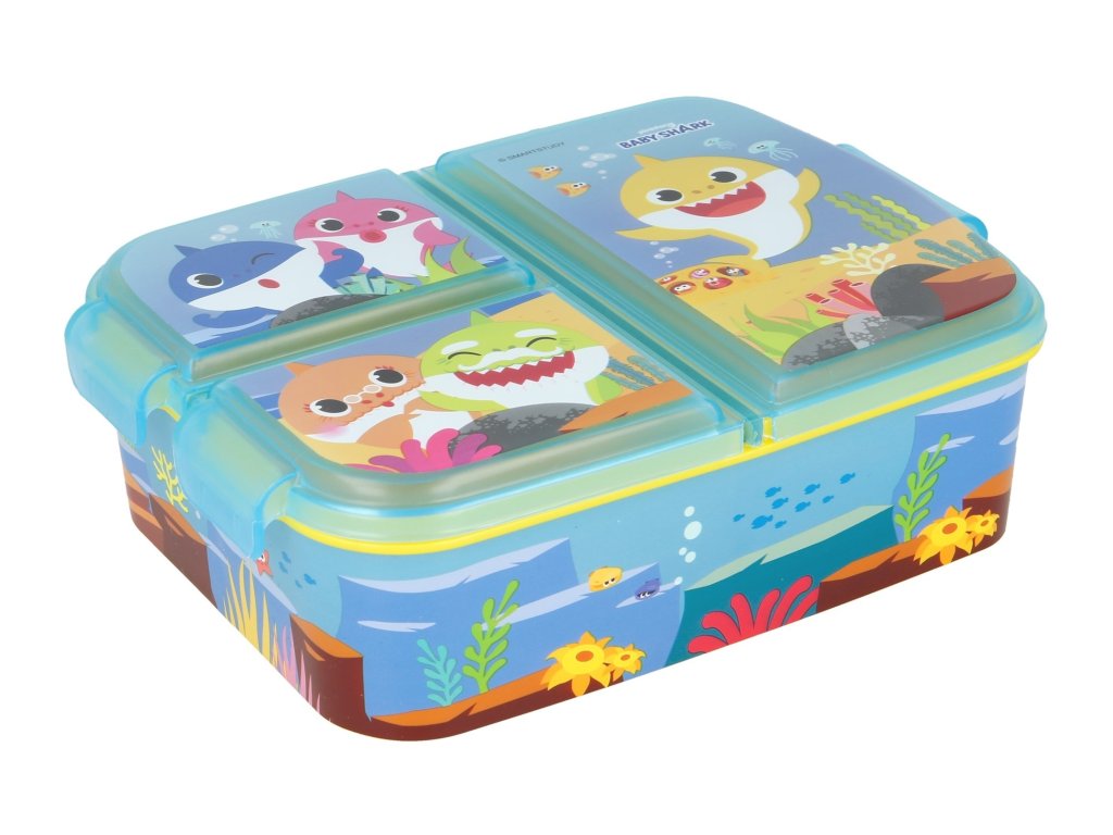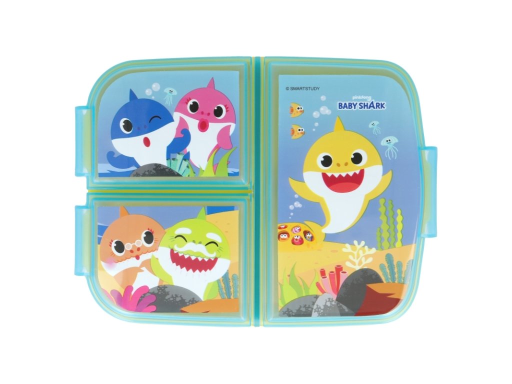 Veselá žraločí miminka Baby Shark vašim dětem neublíží. Naopak kluci i holky na svačinu v tomto děleném boxu určitě nezapomenou. Super svačinový boxík má tři přihrádky. Jeden větší prostor na hlavní svačinku a dva menší na ovoce a dobrůtku, která nesmí chybět. Děti si svačinový box mohou vzít do parku, přírody, do školy nebo na výlet. Vyrobeno z odolného, zdravotně nezávadného materiálu, odolá i náhodným pádům a nárazům při každodenním používání.