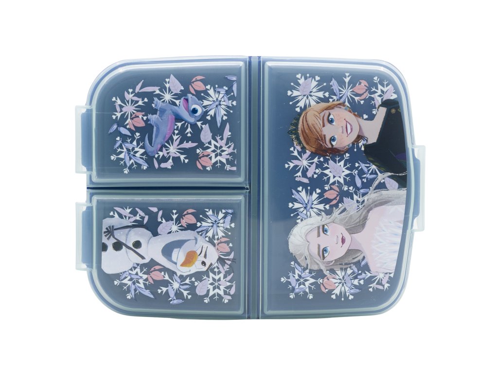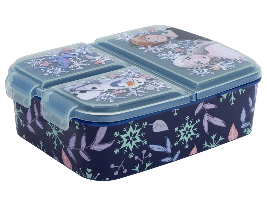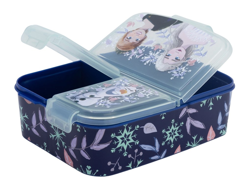 Do školy i na výlety se svačinovým boxem Frozen. Svačinová tříkomorová krabička je díky voděodolnému a nerozbitnému materiálu výborným pomocníkem pro každodenní použití. Má atraktivní zdobené víko s oblíbenými pohádkovými postavičkami vašich dětí a tři přihrádky pro tu nejlepší svačinku. Box je vyroben z odolného zdravotně nezávadného materiálu.