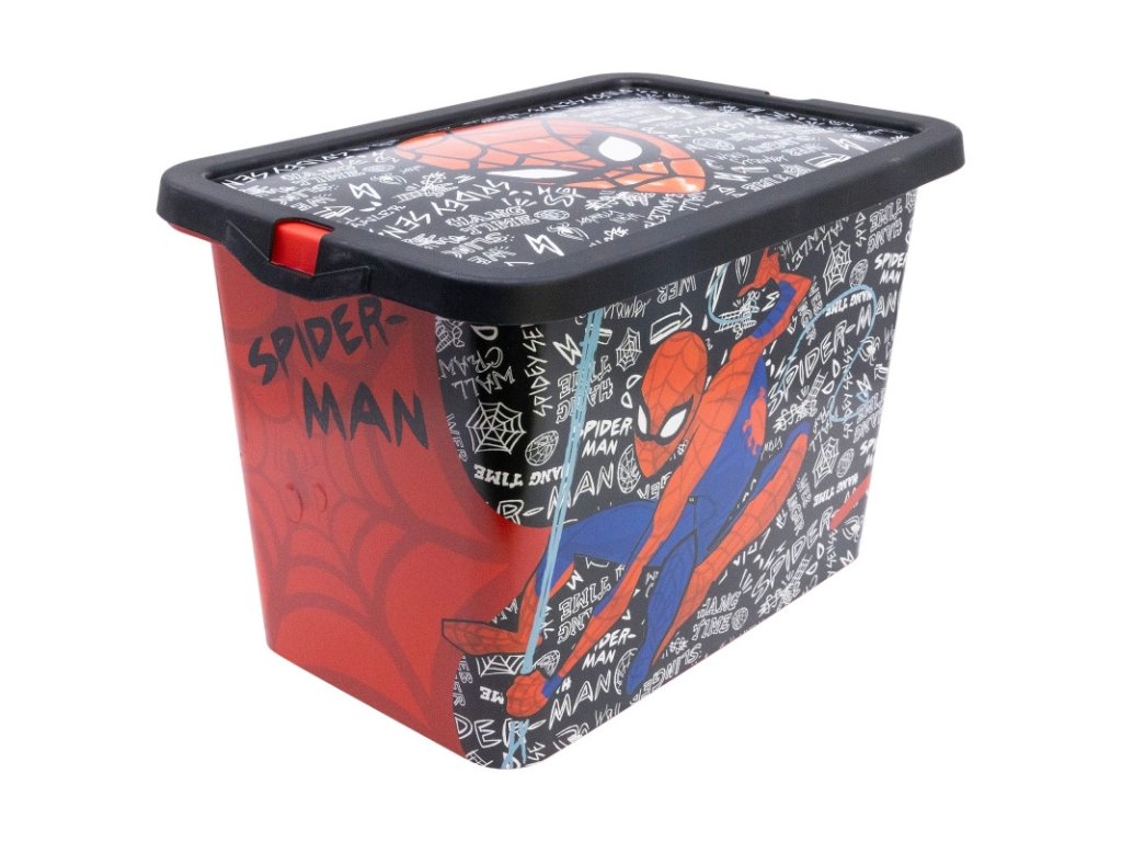 Plastový úložný box s víkem SPIDERMAN s nápisy červeno-černý 7 L