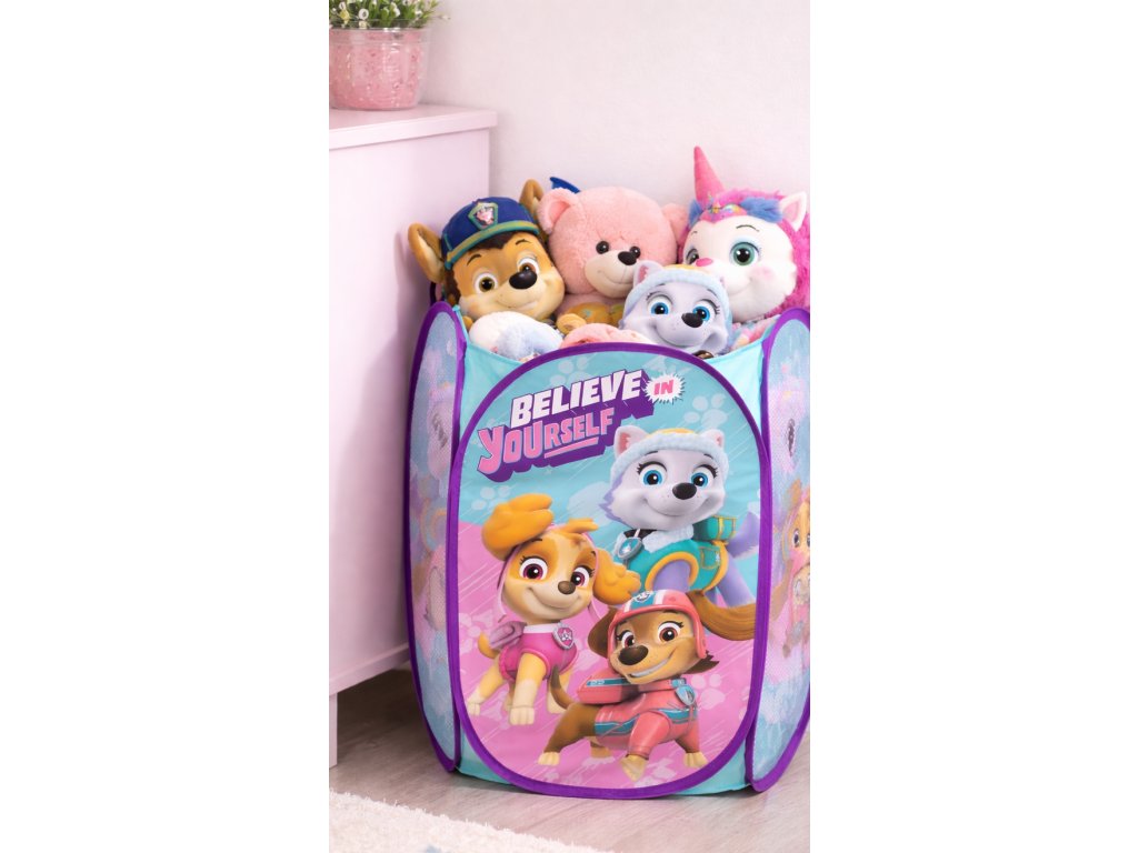 Textilní úložný koš. Koukejte jak se Skye, Liberty i Everest už těší na vaše děti. Vědí, že jen ty správné organizéry na hračky zajistí, že i úklid se pro děti stane zábavou. Velmi praktický skládací textilní koš na hračky i na prádlo, je zároveň pěknou dekorací do dětských pokojů. Jedná se o lehounkou konstrukci se síťovinou a složení i rozložení je otázkou 2 sekund.