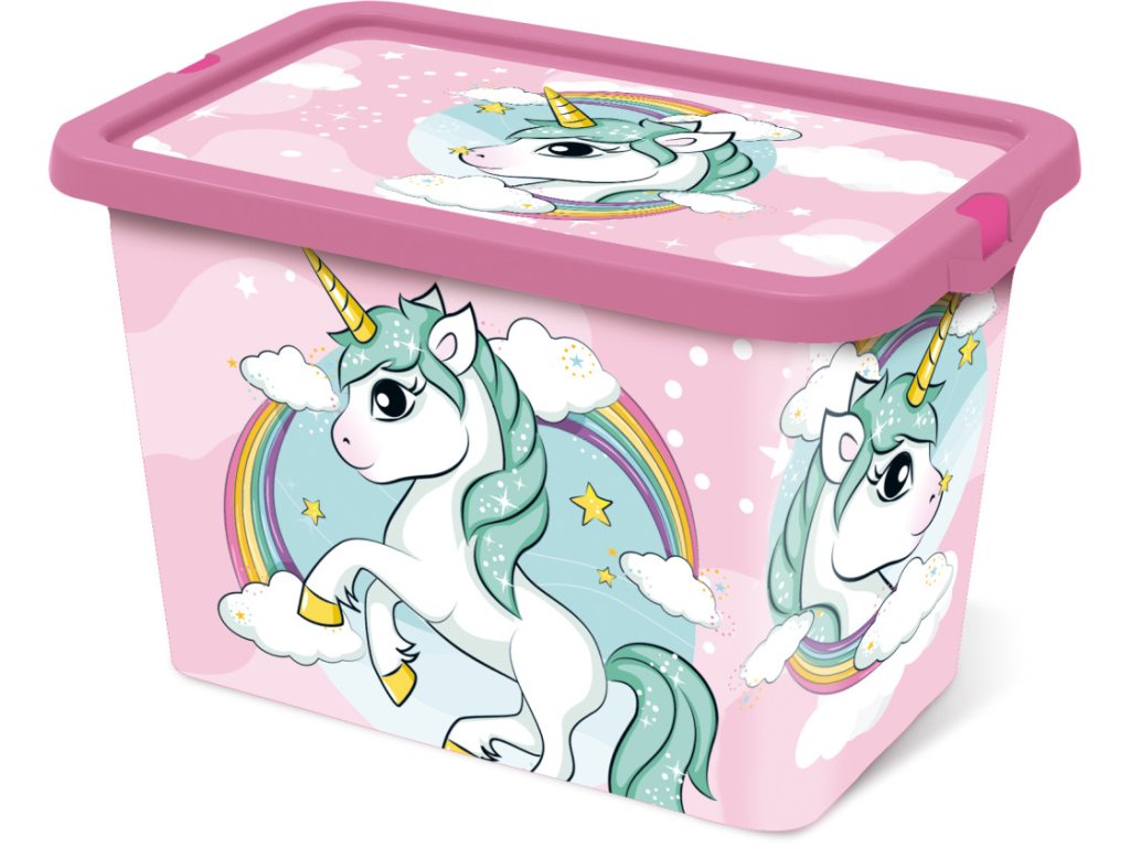 Plastový úložný box s víkem UNICORN - JEDNOROŽEC na duze růžový 7 L
